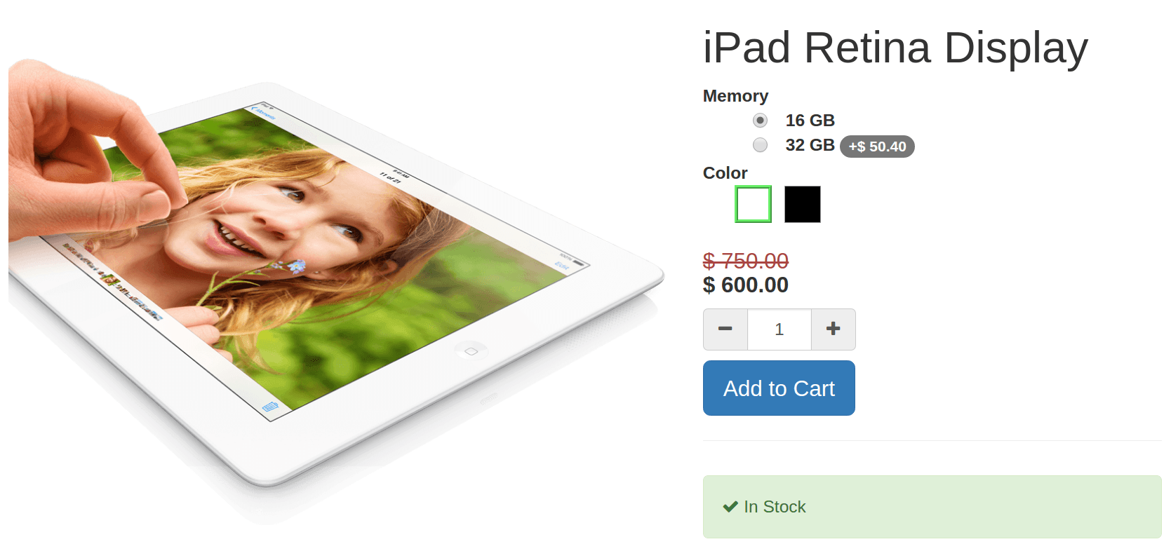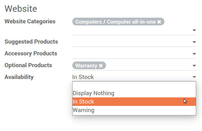 To display this, open the Sales tab in the product detail form and select an option in Availability.